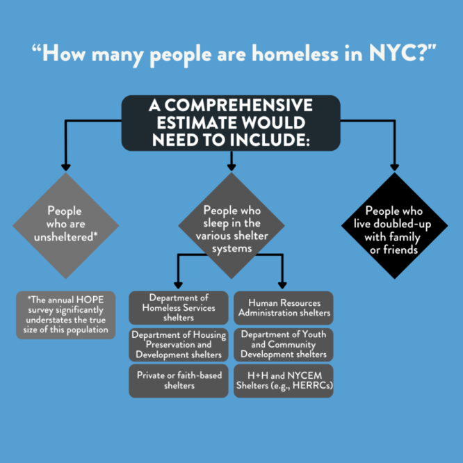Homelessness is a complex issue with many causes. It is estimated that nearly one in every 210 New Yorkers is homeless — that’s 90,000 men, women, and children who don’t have the basic necessity of a safe and stable place